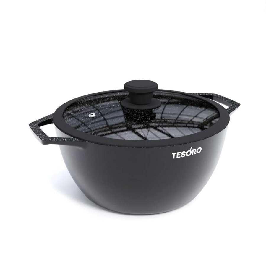 - Кастрюля 4,0л Tesoro FLORENCE TOTAL DARK литой алюм. АП со стекл. крышкой индукция TF6640tdi