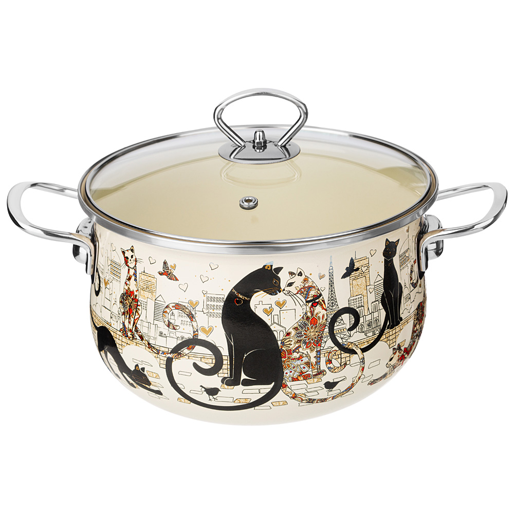 - Кастрюля эмаль 3,6л Agness ПАРИЖСКИЕ КОТЫ со стекл. крышкой индукция 915-153