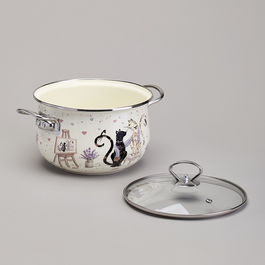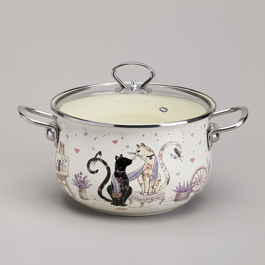 - Кастрюля эмаль 3,8л Agness LAVENDER CATS со стекл. крышкой индукция 943-078