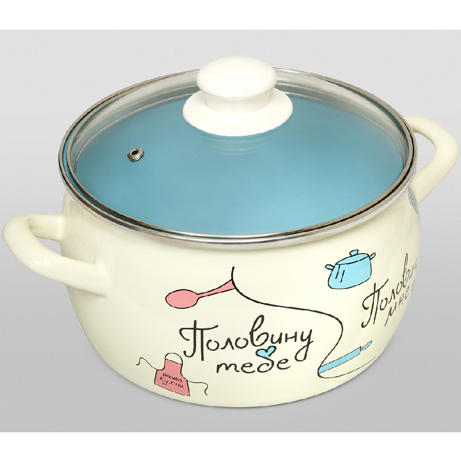 - Кастрюля эмаль 4,0л Metrot ПОЛОВИНКИ сферическая со стекл. крышкой индукция 368451