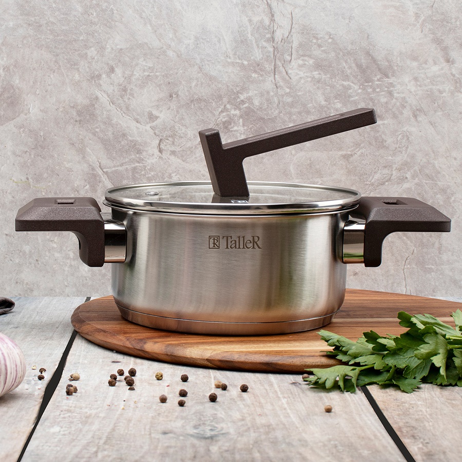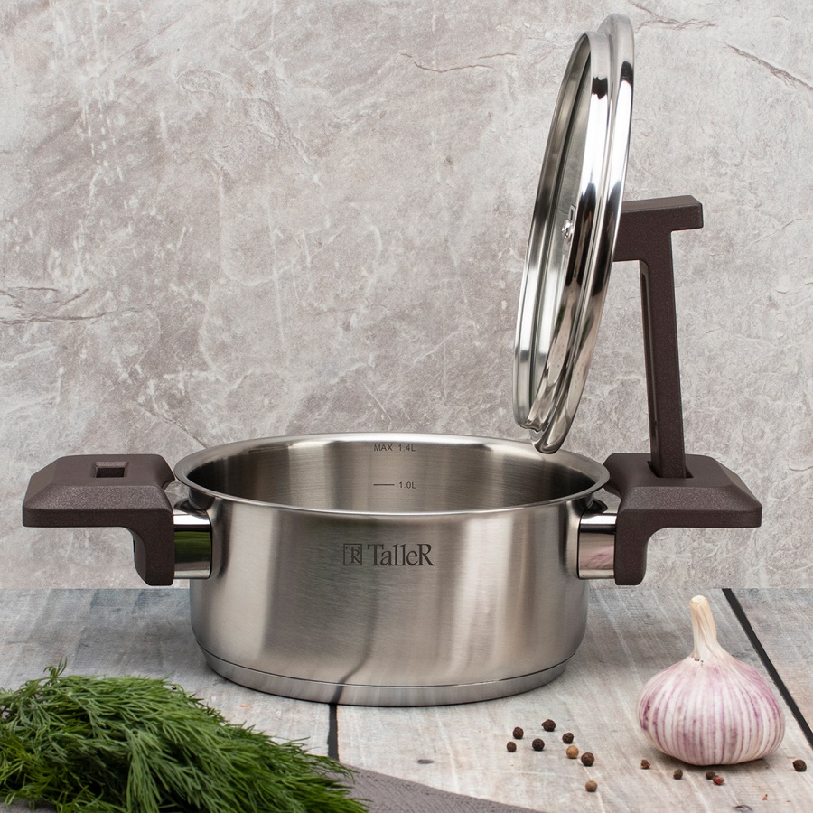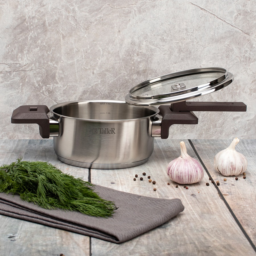 - Кастрюля нерж. сталь 1,4л Taller МЕТОД со стекл. крышкой индукция TR-17306