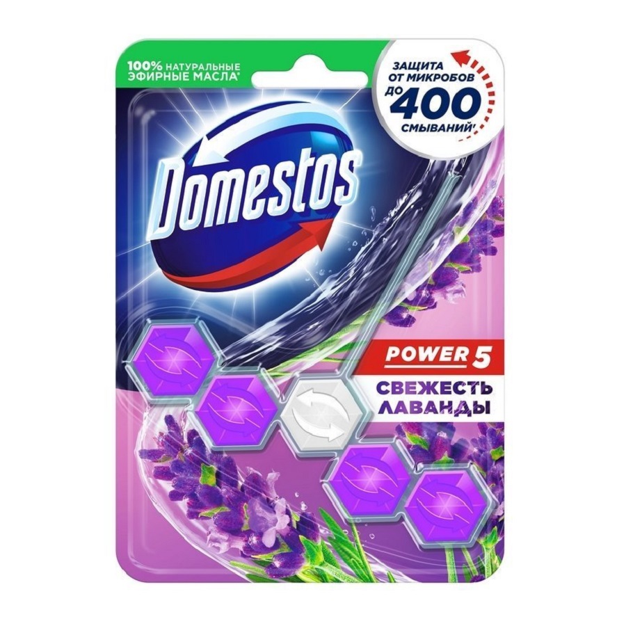 - Блок для унитаза DOMESTOS 50г Power5 Свежесть лаванды 1/10