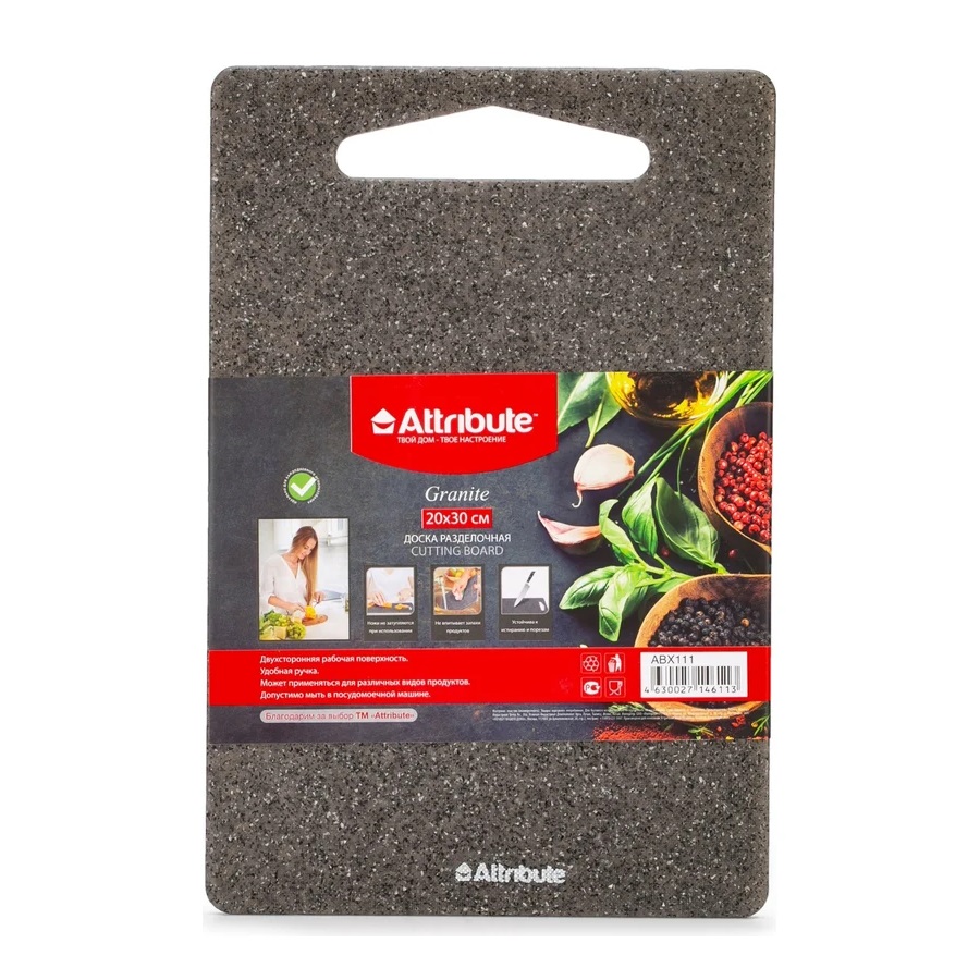 - Доска разделочная пластик 30*20см GRANITE с ручкой Attribute ABX111