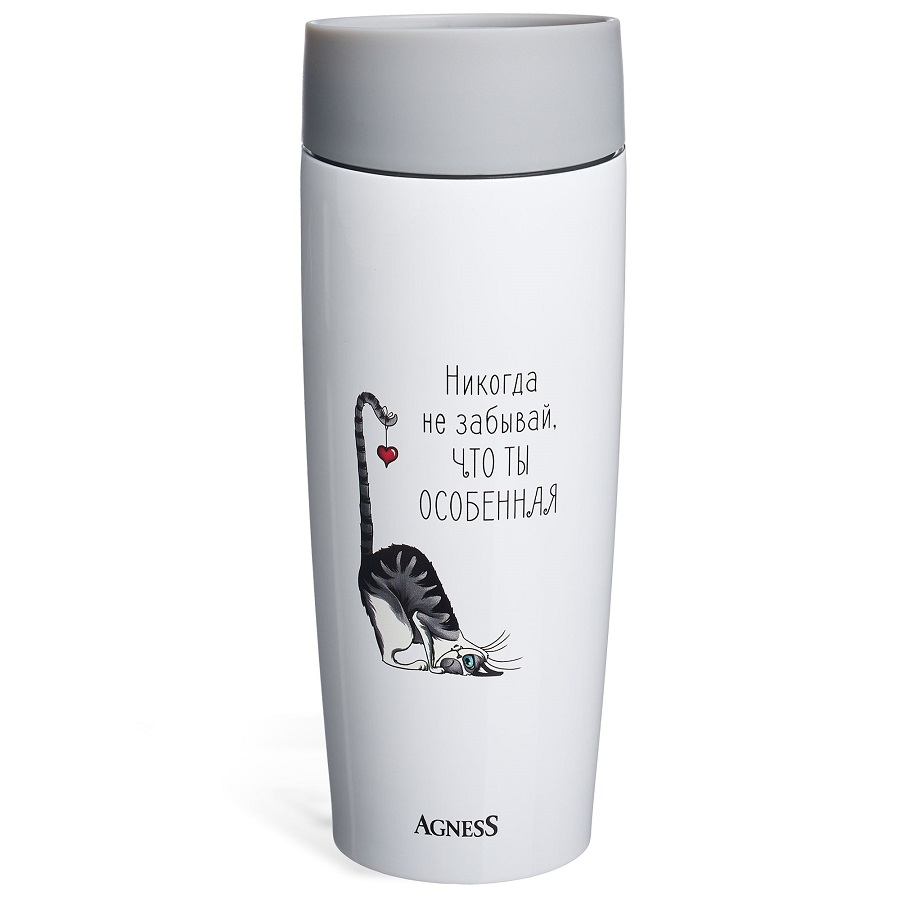 - Термокружка 360мл Agness ОСОБЕННАЯ нерж. сталь кнопка-стоппер 709-122