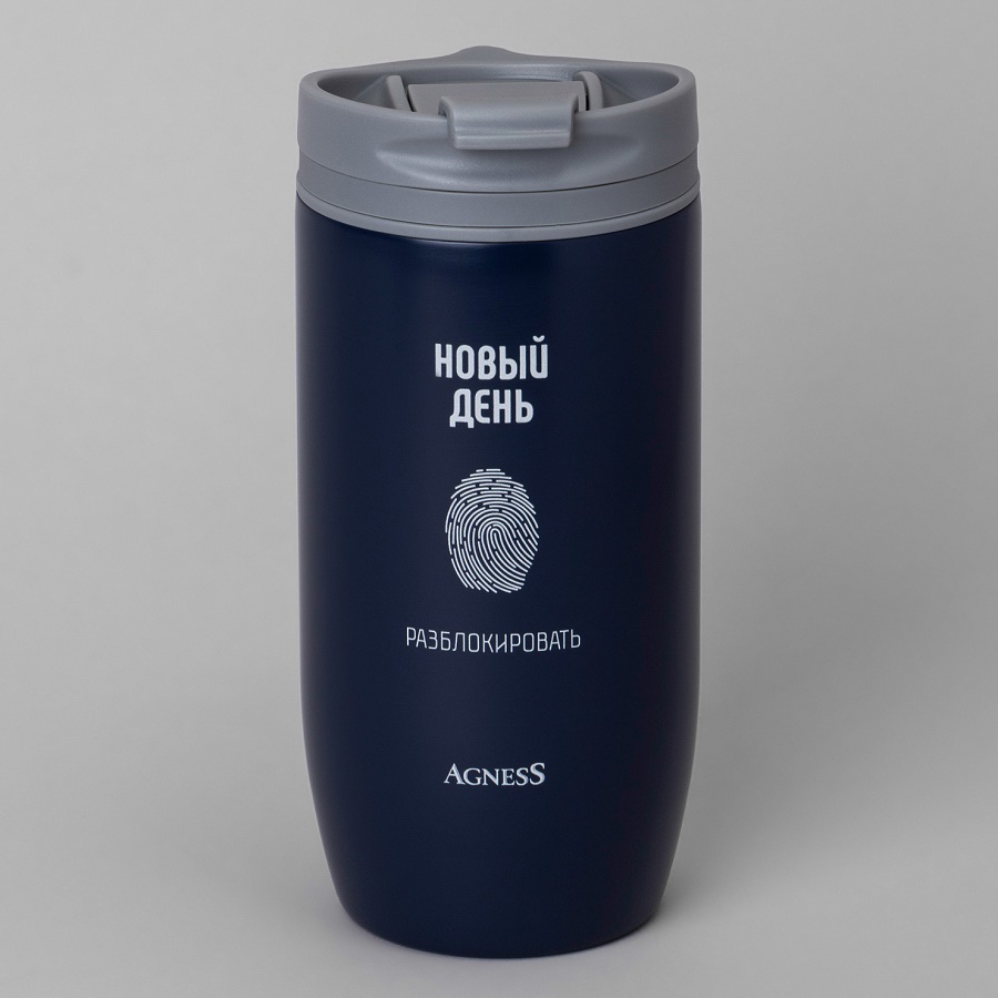 - Термокружка 450мл Agness НОВЫЙ ДЕНЬ нерж. сталь клапан 709-115
