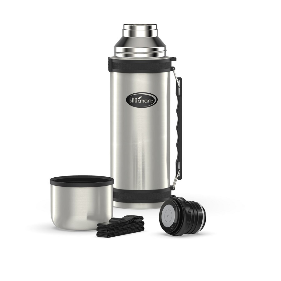- Термос 1200мл Biostal у/г нерж. сталь клапан крышка-чашка складная ручка NY-1200-2