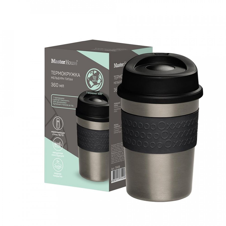 - Термокружка 360мл Master House MELBOURNE Titan нерж. сталь вакуум 75458