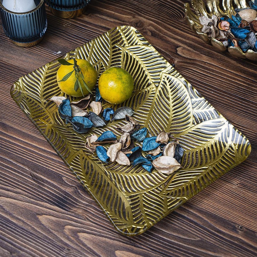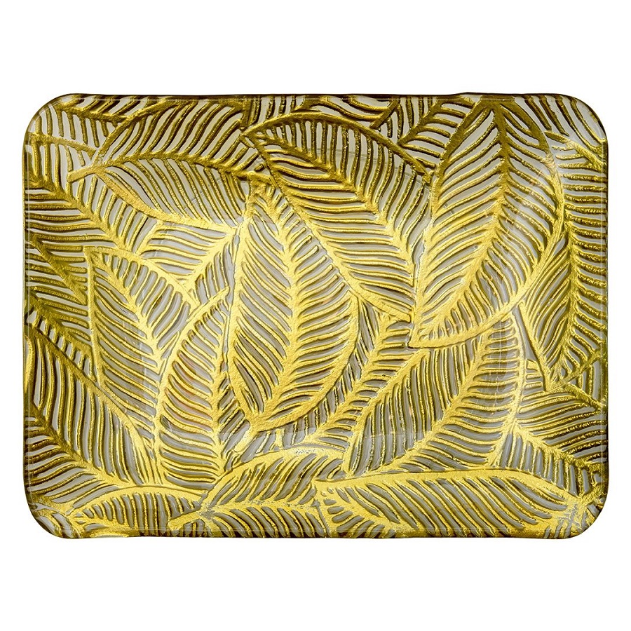 - Блюдо из стекла 30,5*22,5*2,5см ЛИСТЬЯ прямоугольное Магамакс Tin-17