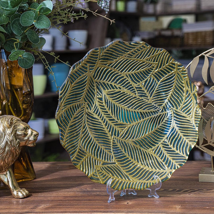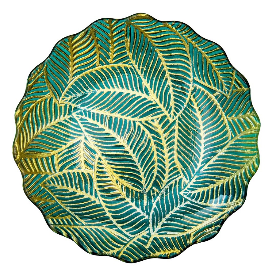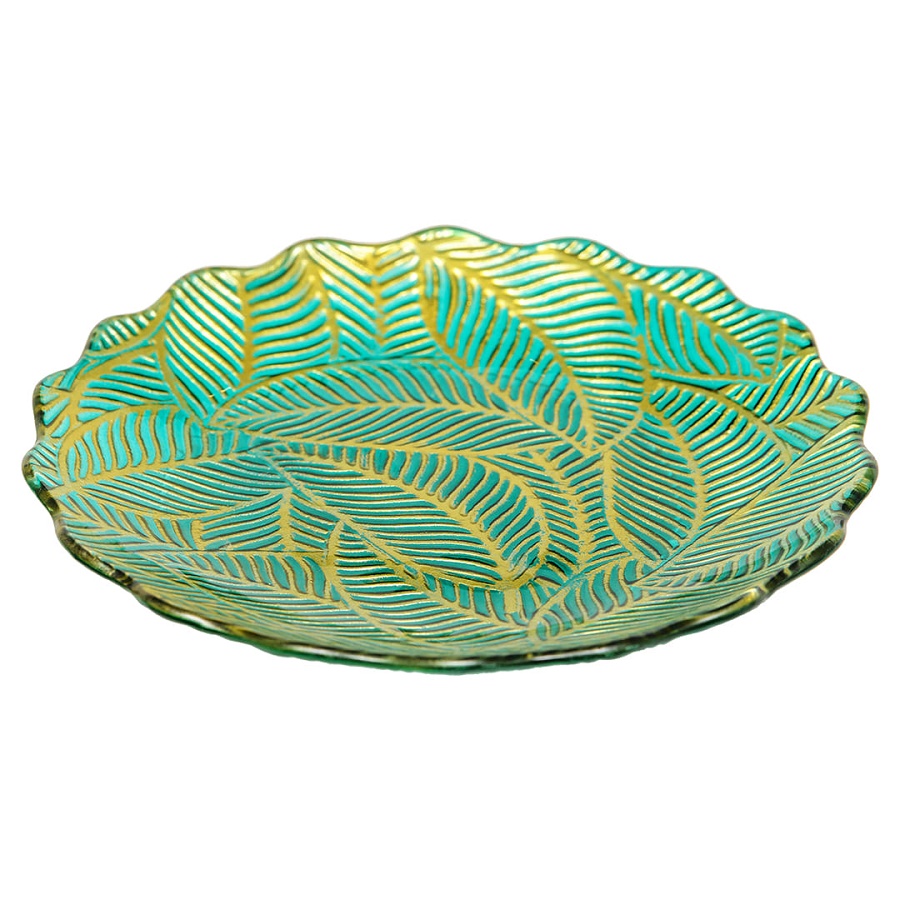 - Блюдо из стекла 30,5см ЛИСТЬЯ зеленый Магамакс Tin-20