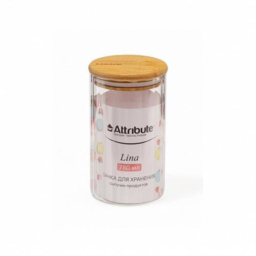 - Банка для сыпучих стекло 780мл LINA бамбук. крышка Attribute AJB112