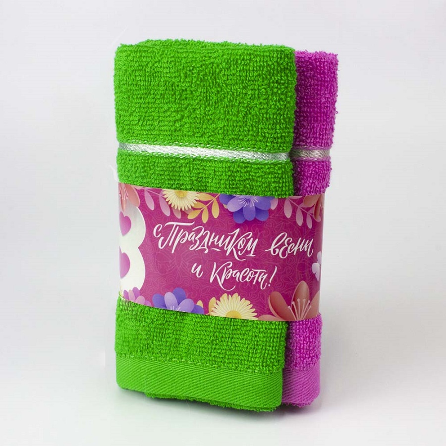 - Набор полотенец 2шт махровые 30*50см 8 МАРТА розовый/малахит Он и Она