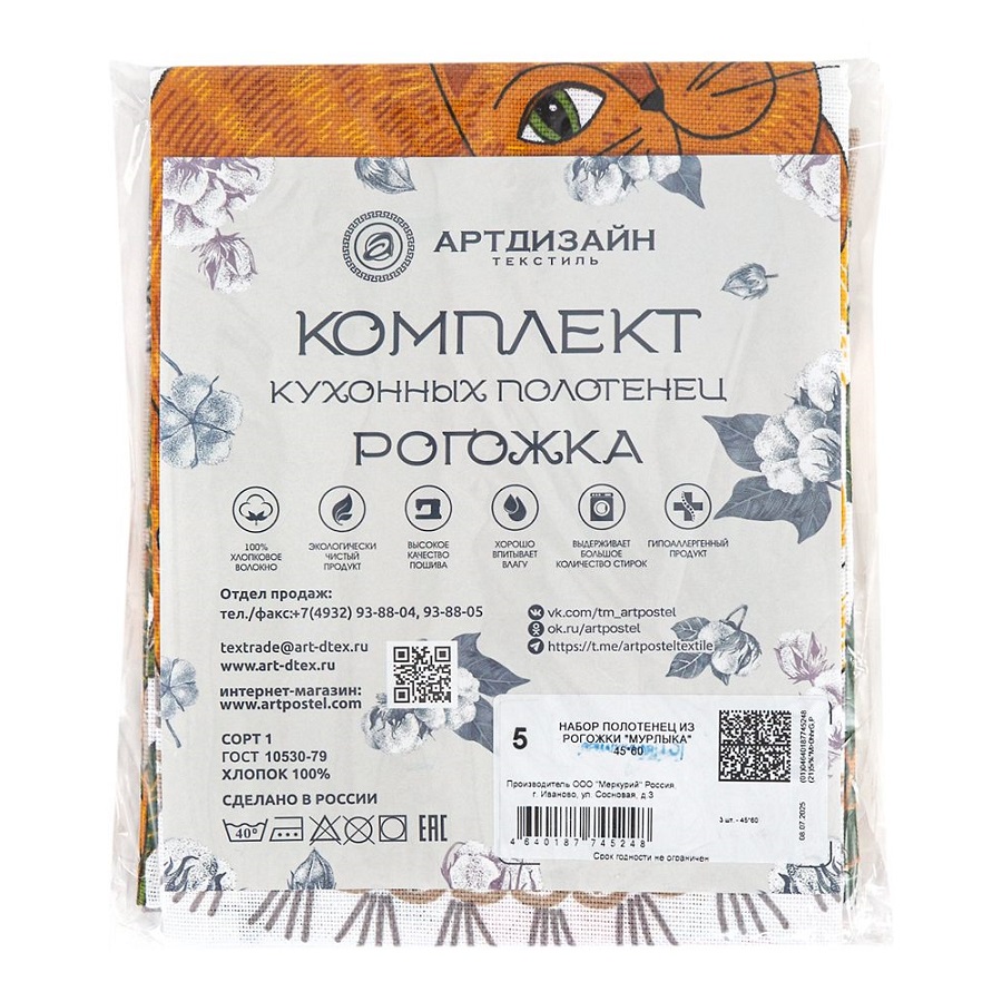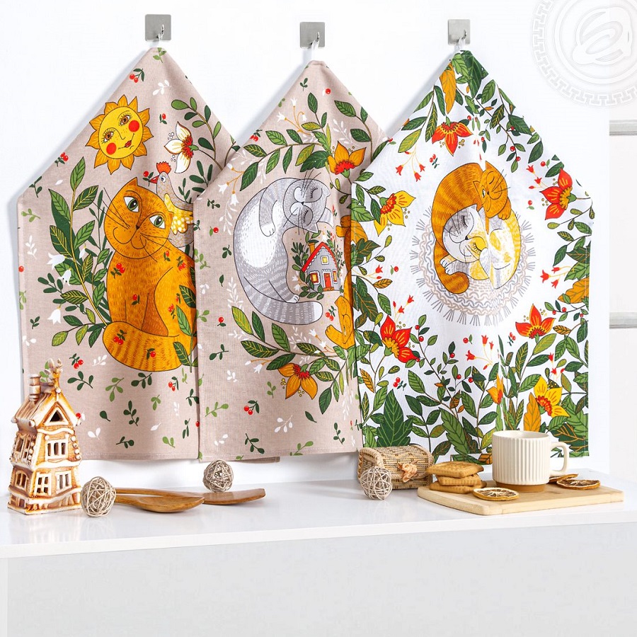 - Набор полотенец 3шт рогожка 45*60см МУРЛЫКА Арт Дизайн