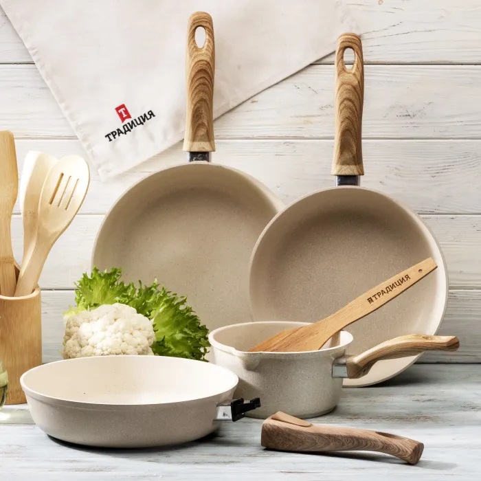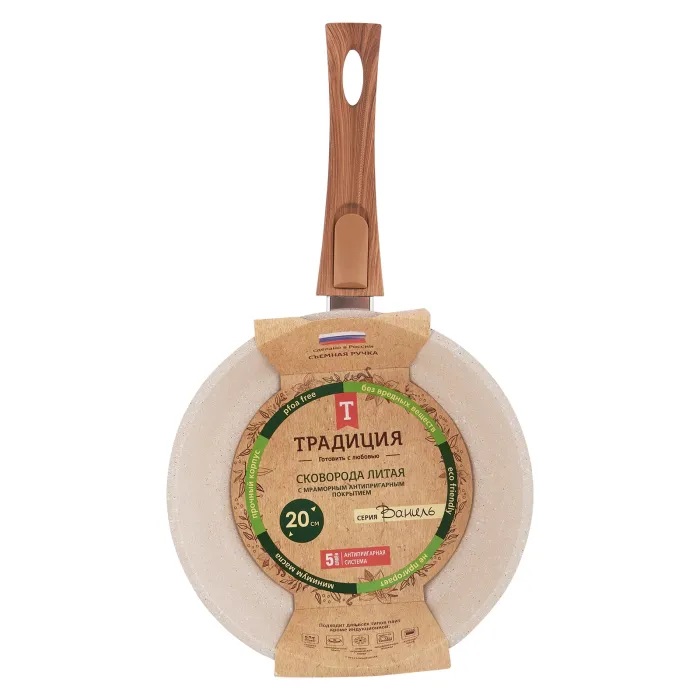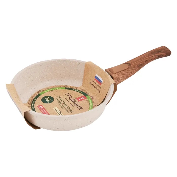 - Сковорода 20см Традиция ВАНИЛЬ литой алюм. АП со съем. ручкой ТВ2205