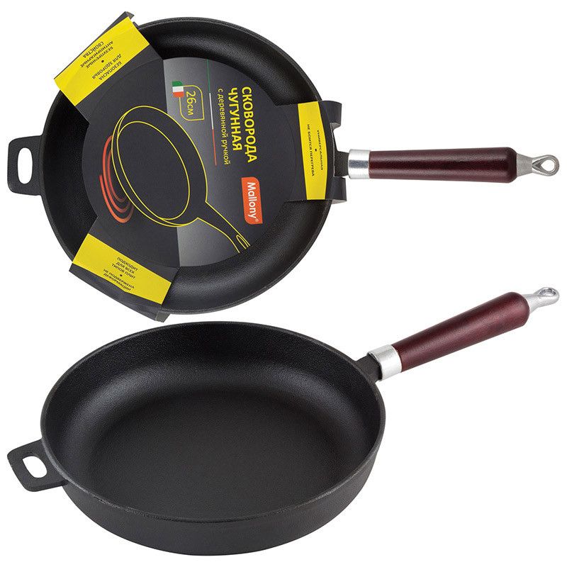 - Сковорода 26см Mallony чугун с деревянной ручкой CIF26-W