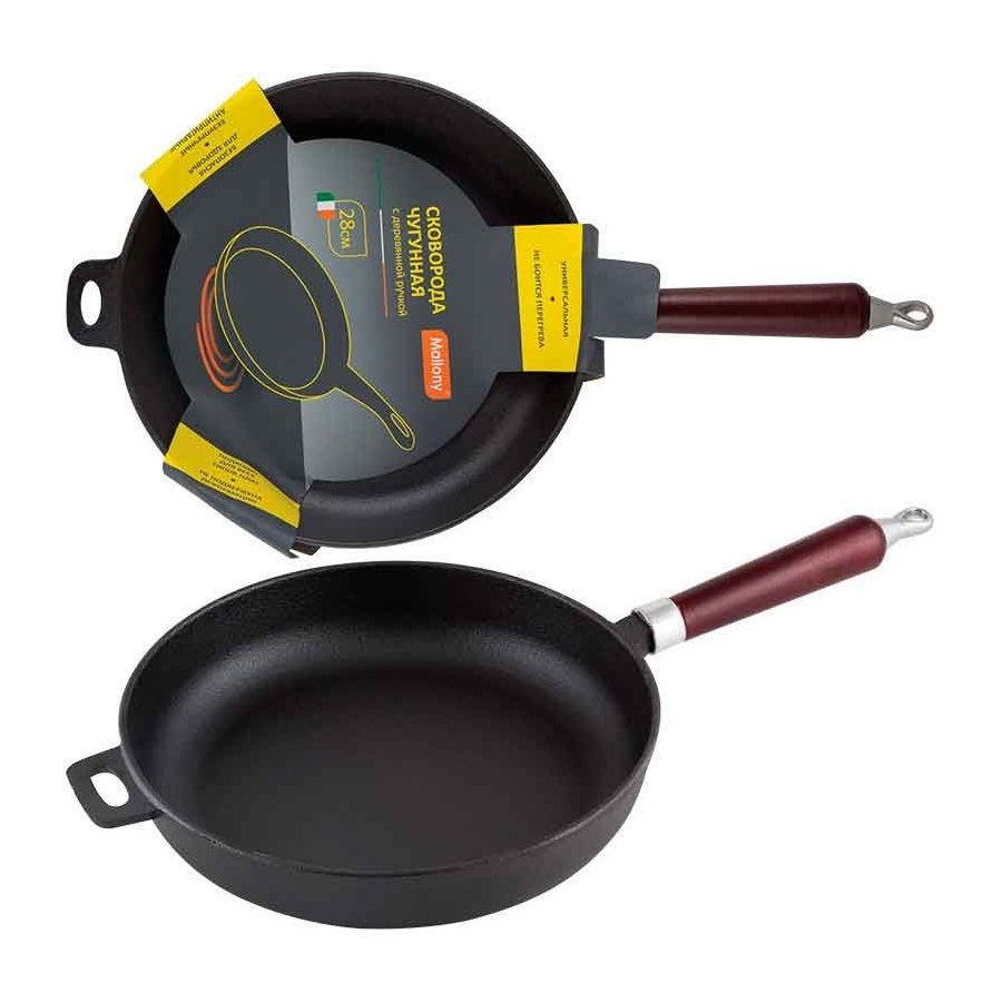 - Сковорода 28см Mallony чугун с деревянной ручкой CIF28-W