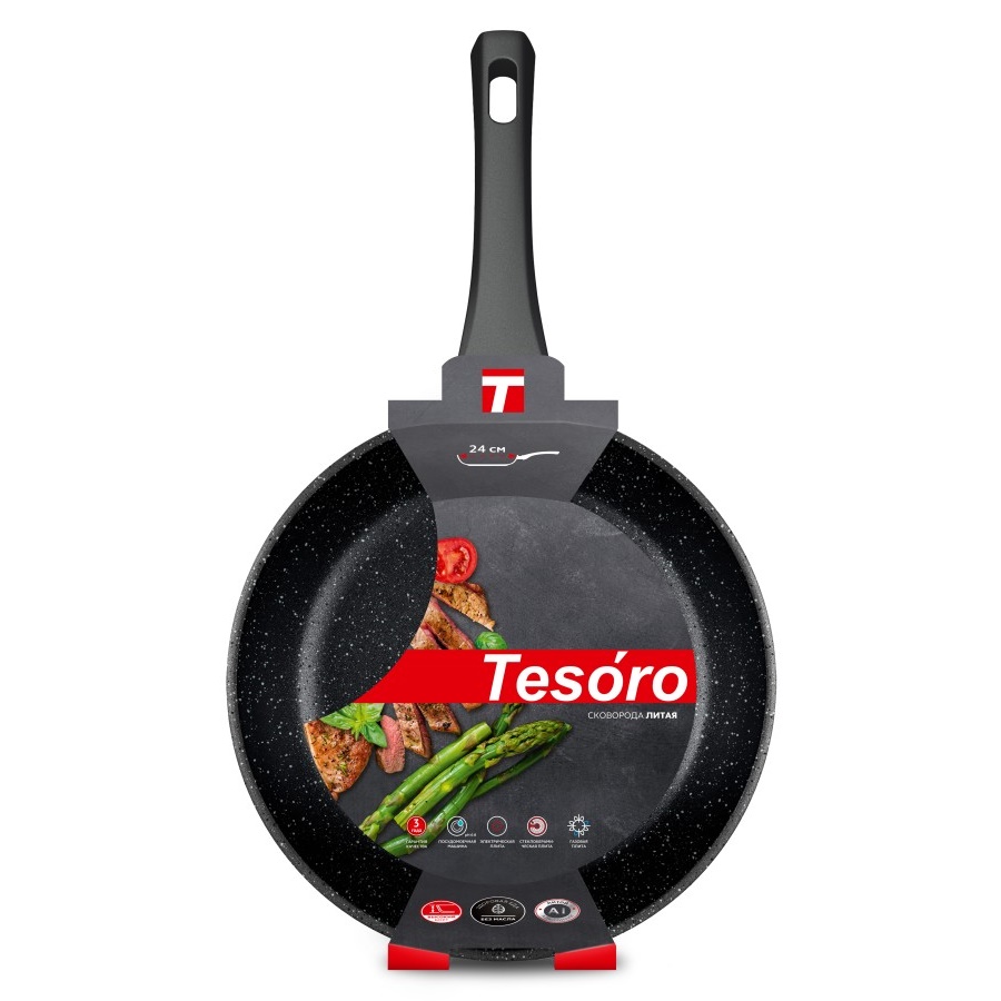 - Сковорода 24см Tesoro FLORENCE BLACK литой алюм. АП TF1124