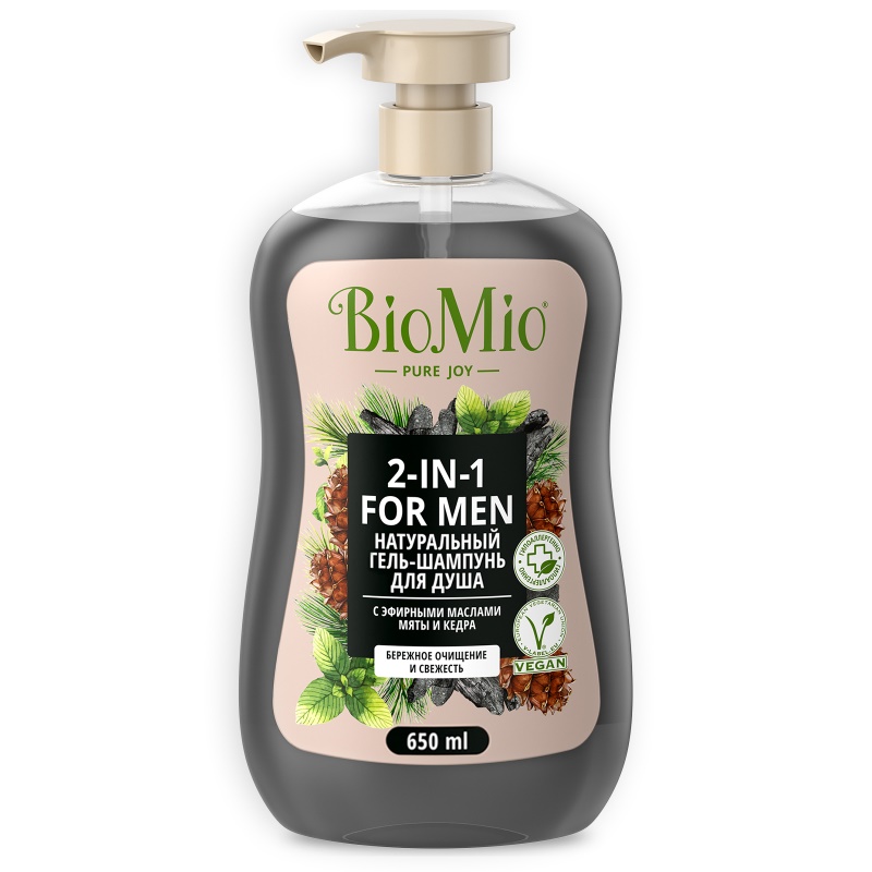 - Гель для душа BIO MIO 650мл MEN 2в1 Мята и Кедр 1/8