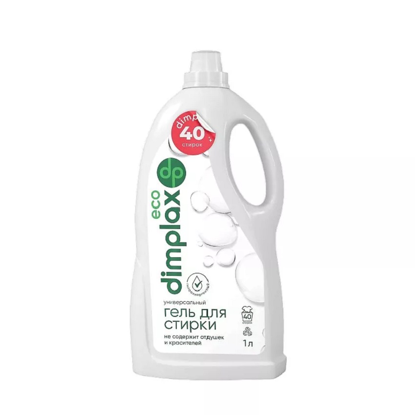 - Гель для стирки DIMPLAX 1,0л Eco для белого белья с пятновыводителем