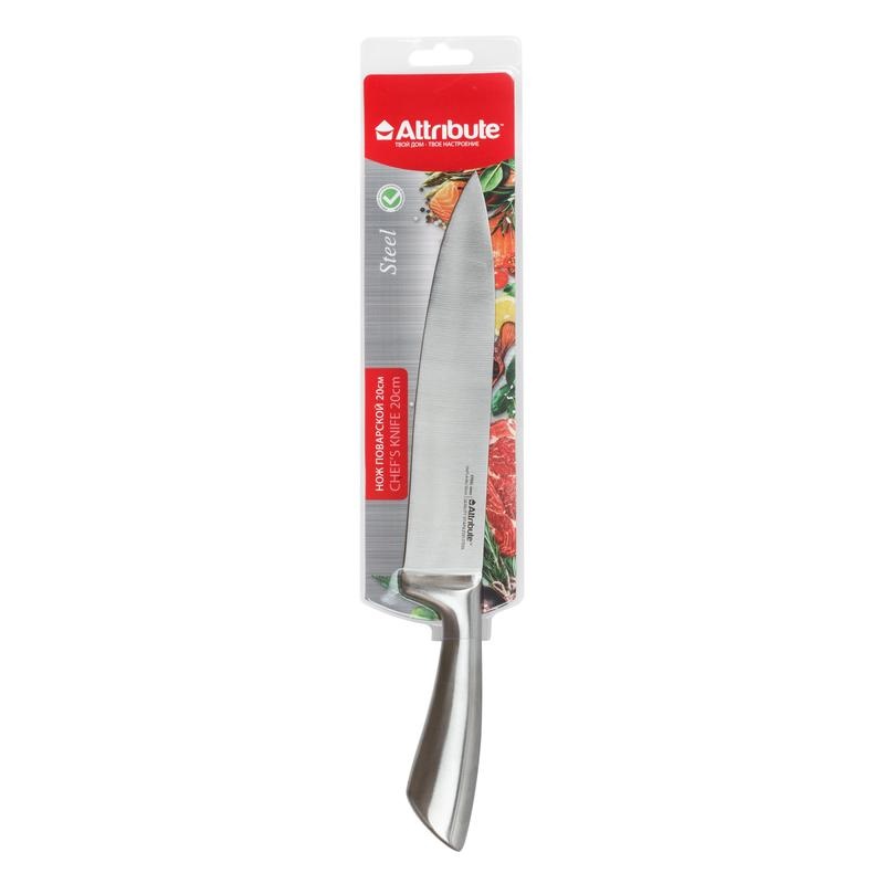 - Нож поварской 20см STEEL стальная ручка Attribute AKS528