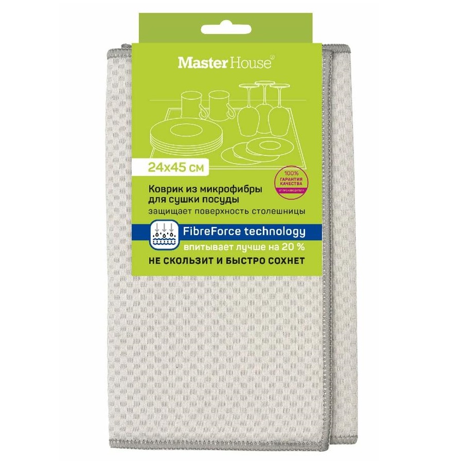 - Коврик для сушки посуды 24*45см ГРЭЙ микрофибра Master House 60379