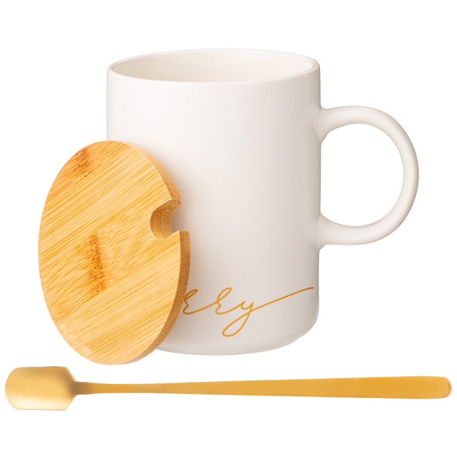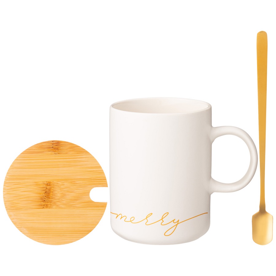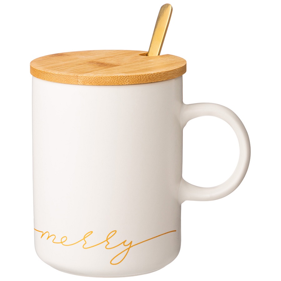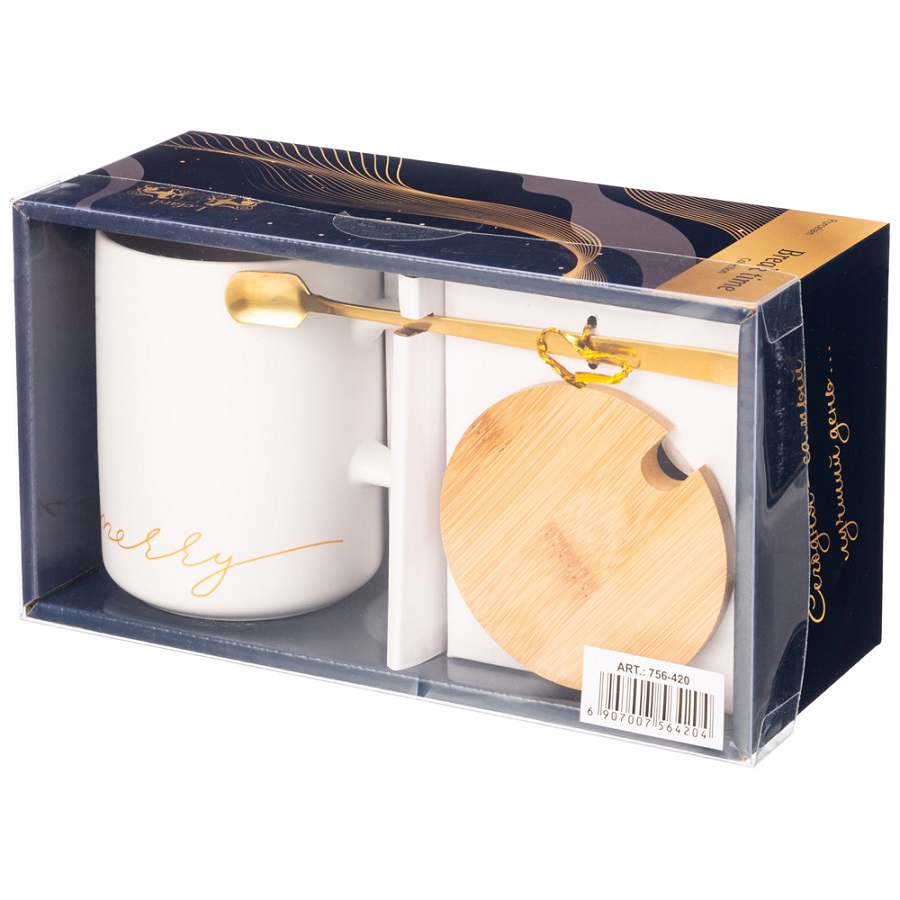 - Кружка фарфор 380мл MERRY с крышкой и ложкой Lefard 756-420