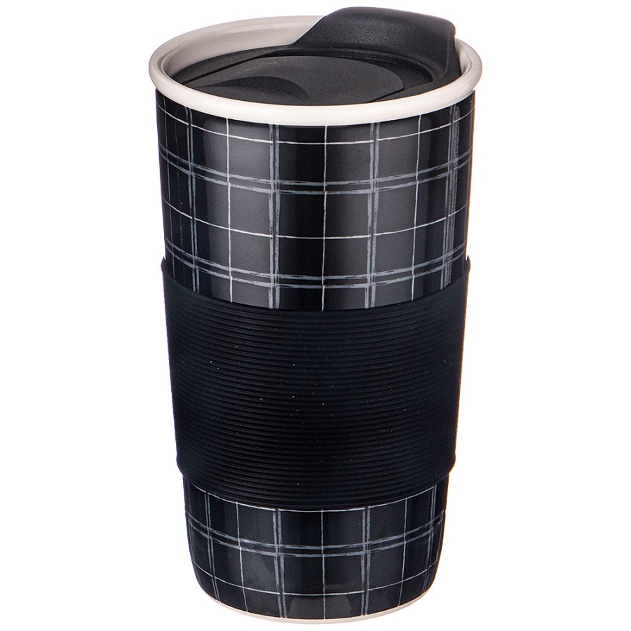 - Стакан фарфор 450мл КОФЕМАНИЯ BLACK с крышкой и рукавом Lefard 756-354