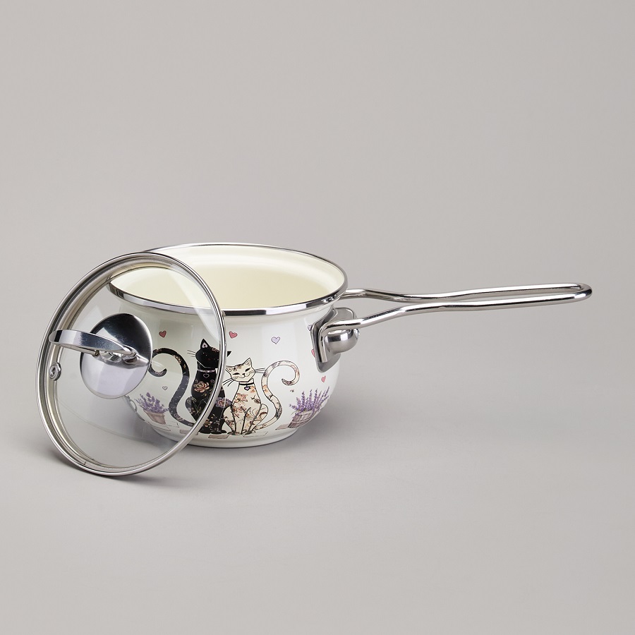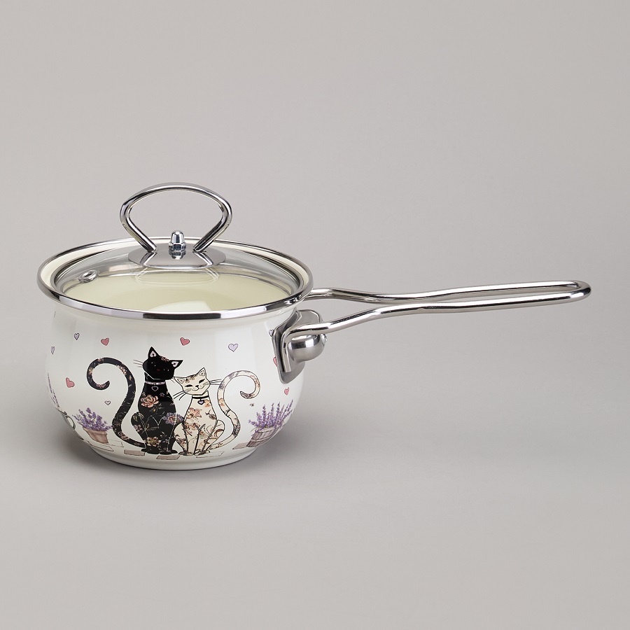 - Ковш-яйцеварка эмаль 0,9л Agness LAVENDER CATS со стекл. крышкой индукция 943-079