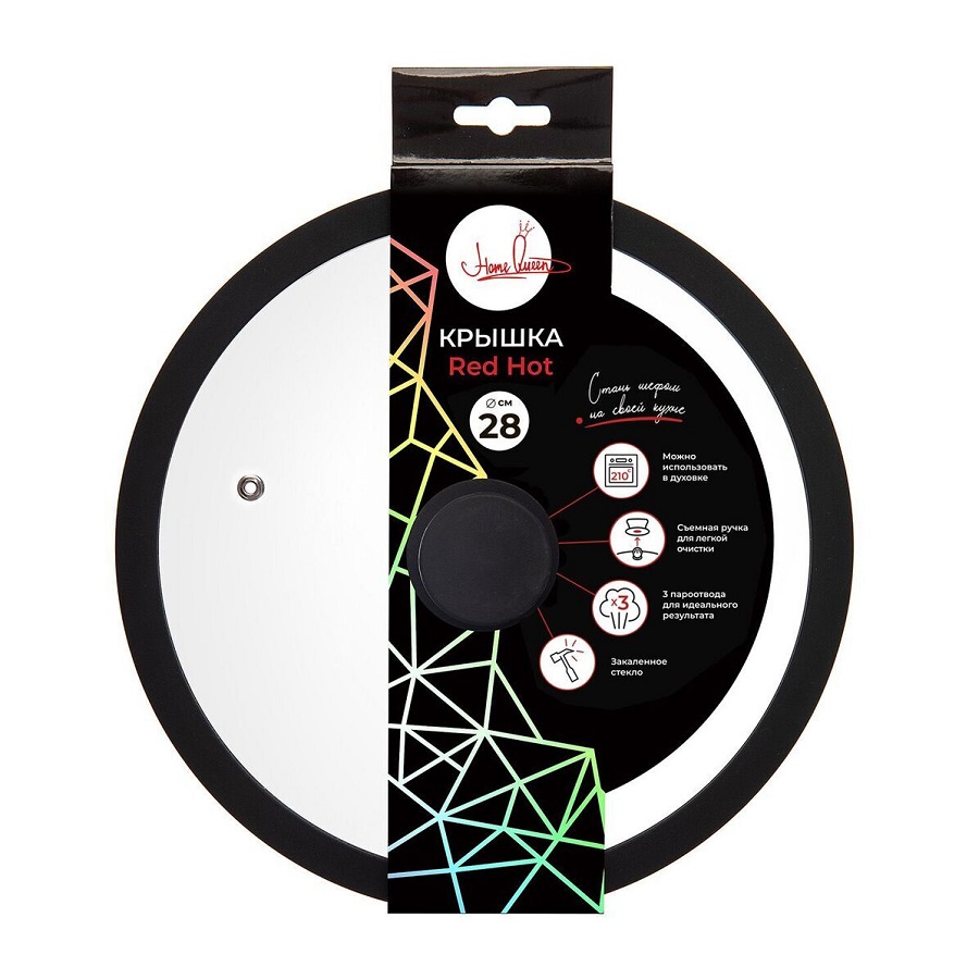 - Крышка 28см Home Queen RED HOT стеклянная с силикон. ручкой и ободом 77479