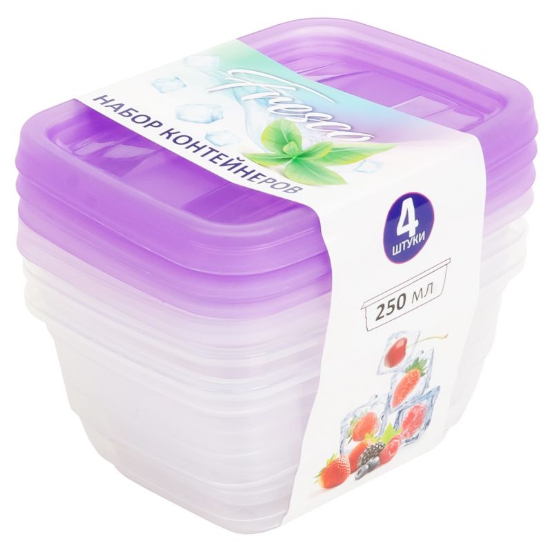 - Набор контейнеров прямоугольные 4шт 0,25л FRESCO лаванда Violet 470025136