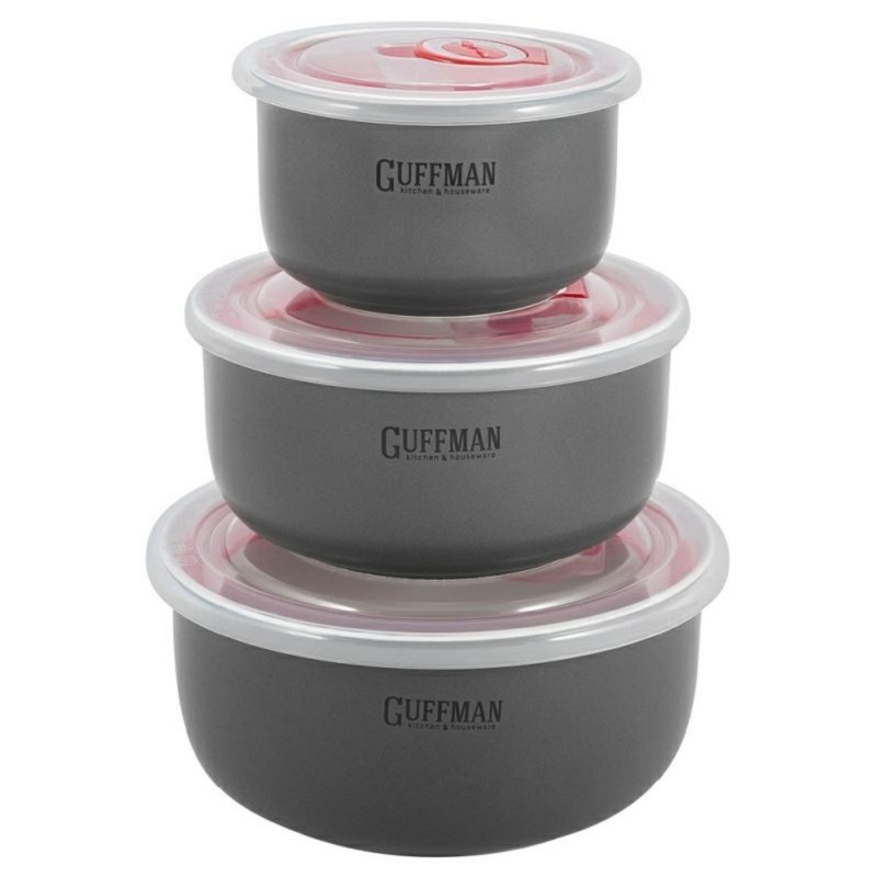 - Набор контейнеров круглые 3шт 0,25л/0,6л/0,85л Grey вакуумное хранение Guffman C-06-032-GR