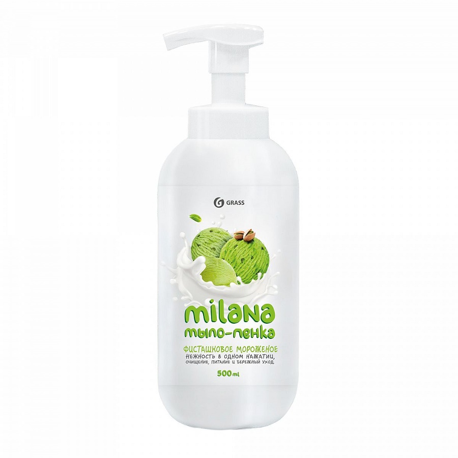 - Мыло-пенка жидкое GRASS 500мл Milana Сливочно-фисташковое мороженое