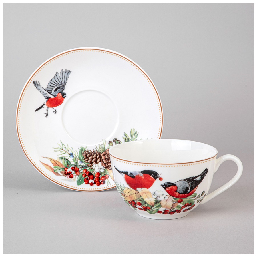 - Чайная пара фарфор 300мл МОРОЗКО СНЕГИРИ Lefard 85-2059