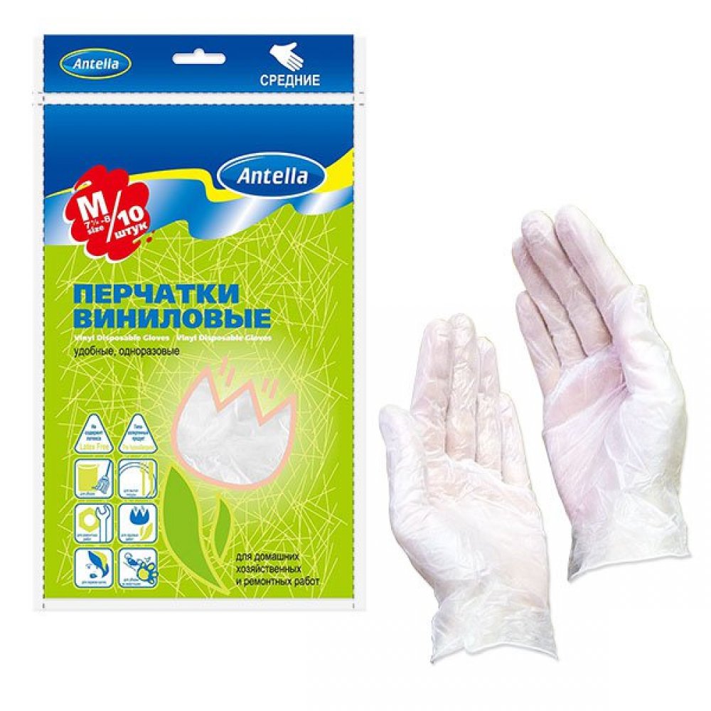 - Перчатки виниловые 10шт рМ Антелла 70103