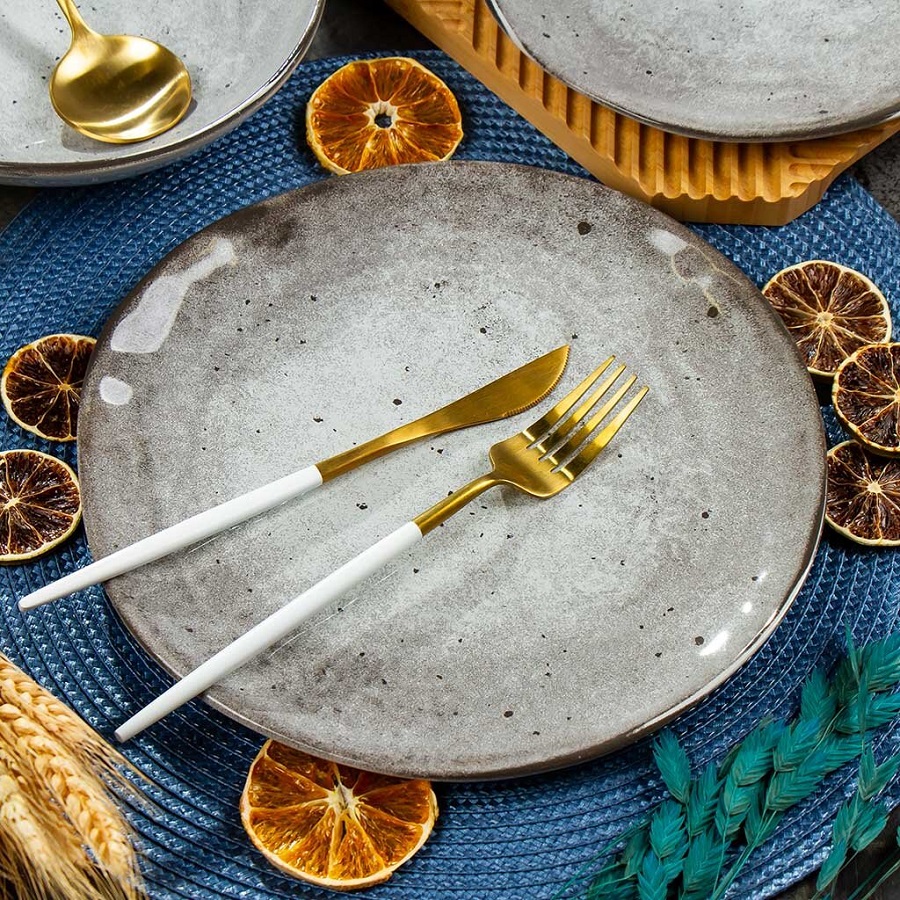 - Тарелка обеденная керамика 26см STONE серый Domenik DMD041