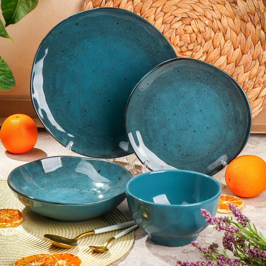 - Тарелка обеденная керамика 26см STONE синий Domenik DMD051