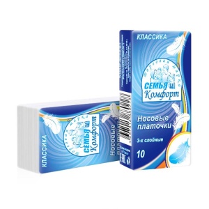 - Платочки бумажные СЕМЬЯ И КОМФОРТ 10шт 3сл 1/10