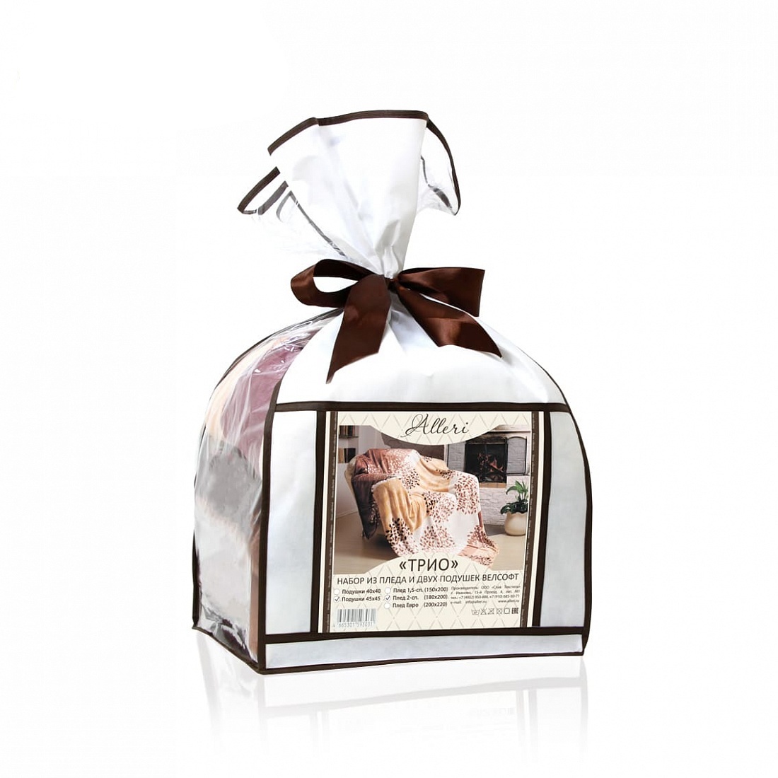 - Набор подарочный 3пр ТРИО (плед 180*200см+2 подушки 45*45см) Alleri