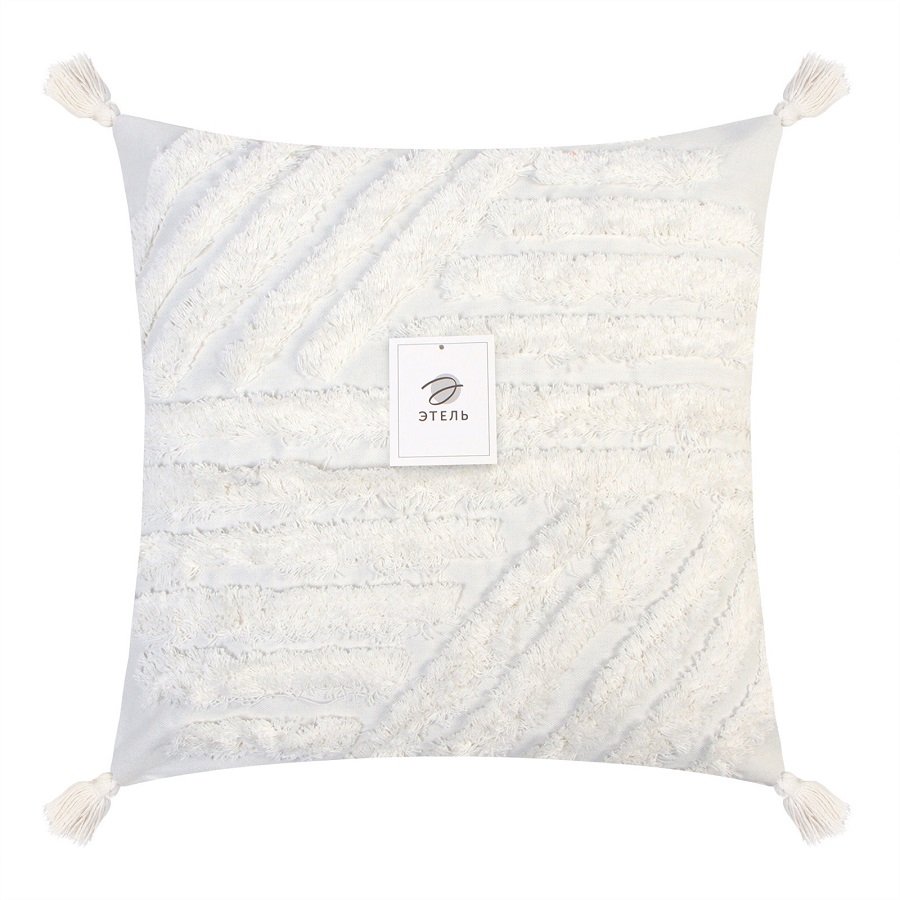 - Наволочка декоративная 45*45см хлопок БОХО с кисточками (светло-молочный) Этель 9691606