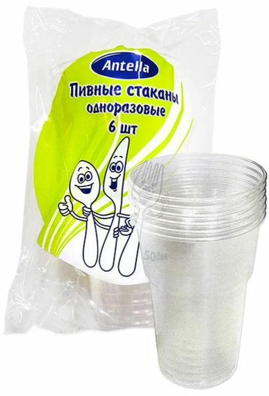 - Стакан пластиковый 400мл 6шт ПРОЗРАЧНЫЙ Антелла 25211