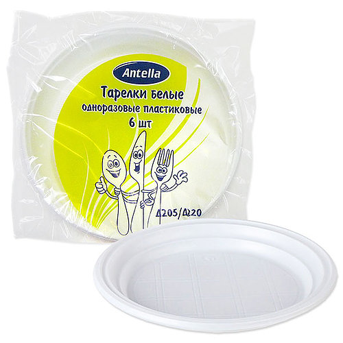 - Тарелка пластиковая мелкая 22см 6шт БЕЛЫЙ Антелла 04024