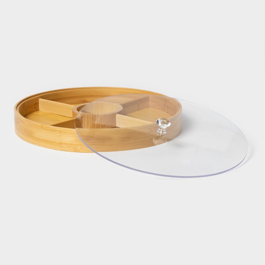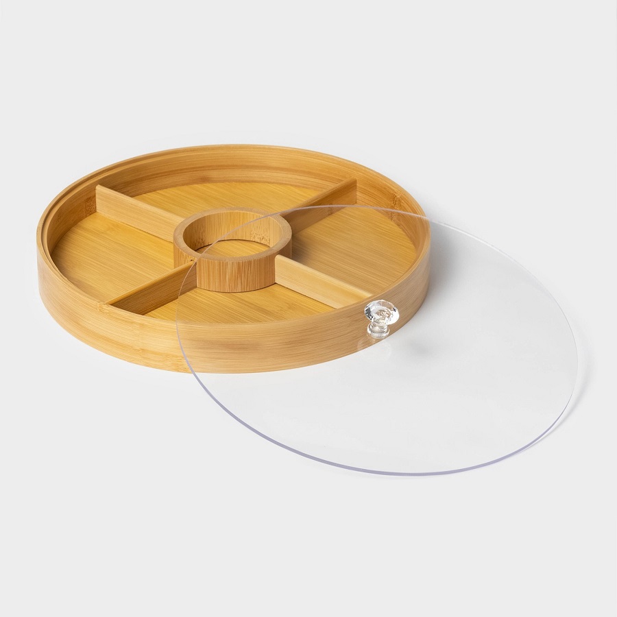 - Менажница из бамбука 5-ти секц. 30см STRIATA с крышкой Доляна 7061101