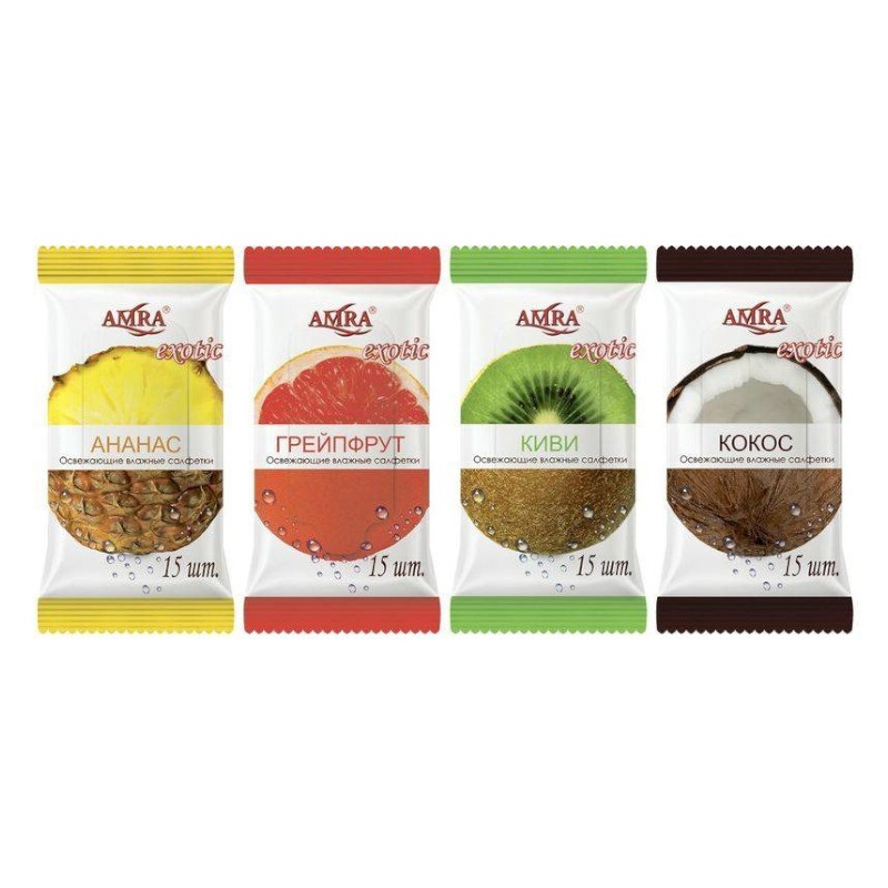 - Салфетки влажные AMRA 15шт Экзотик освежающие 1/48