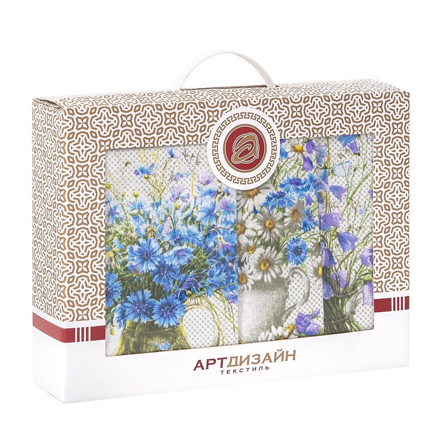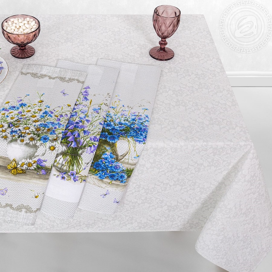 - Комплект кухонный рогожка 4пр (скатерть 150*183см+полотенце 3шт) ПОЛЕВЫЕ ЦВЕТЫ Арт Дизайн