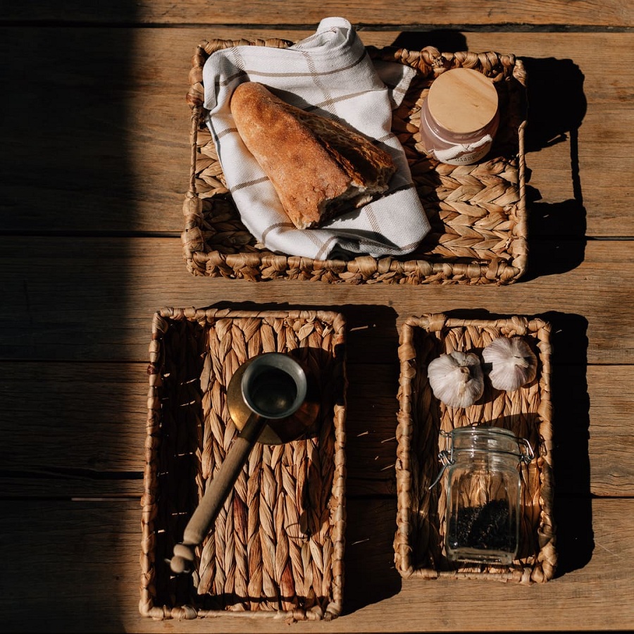 - Поднос плетенный 28*18*5см ЗОЛОТИСТЫЙ КОЛОС песочный Магамакс Shan-11