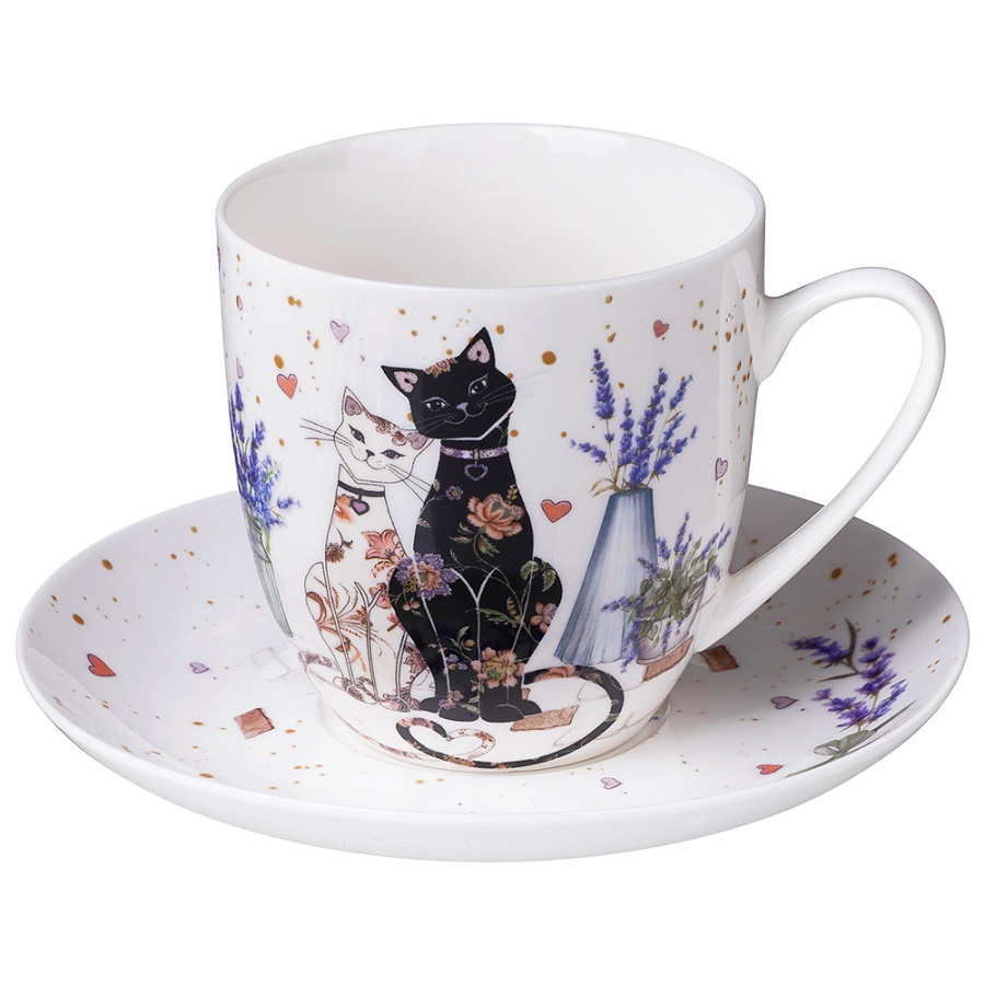 - Чайная пара фарфор 350мл ЛАВАНДОВЫЕ КОТЫ Lefard 425-174