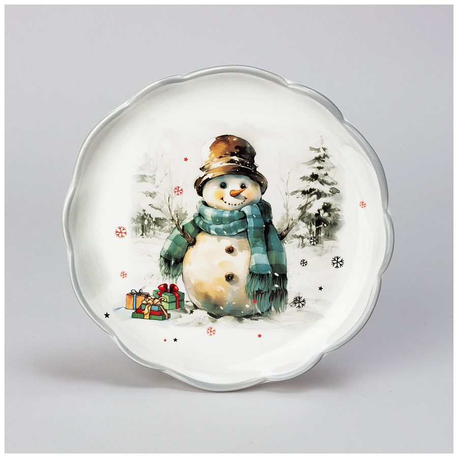 - Тарелка десертная керамика 20,3см С НОВЫМ ГОДОМ СНЕГОВИК Agness 358-2266