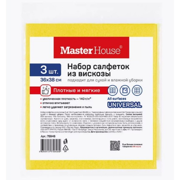 - Салфетки для уборки 3шт 36*38см МОЙ ПУШИСТЫЙ вискоза Master House 75846