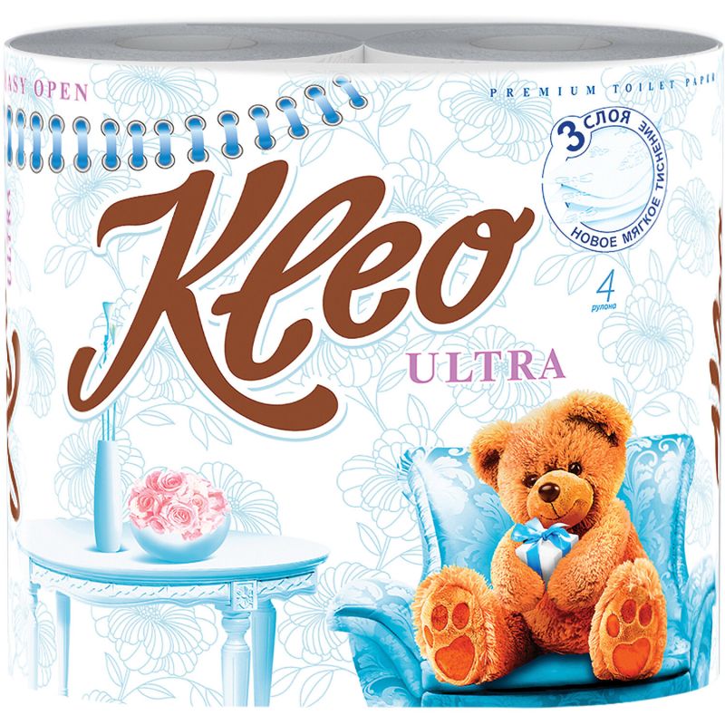 - Бумага туалетная KLEO 4рул 3сл Ultra белая 1/18