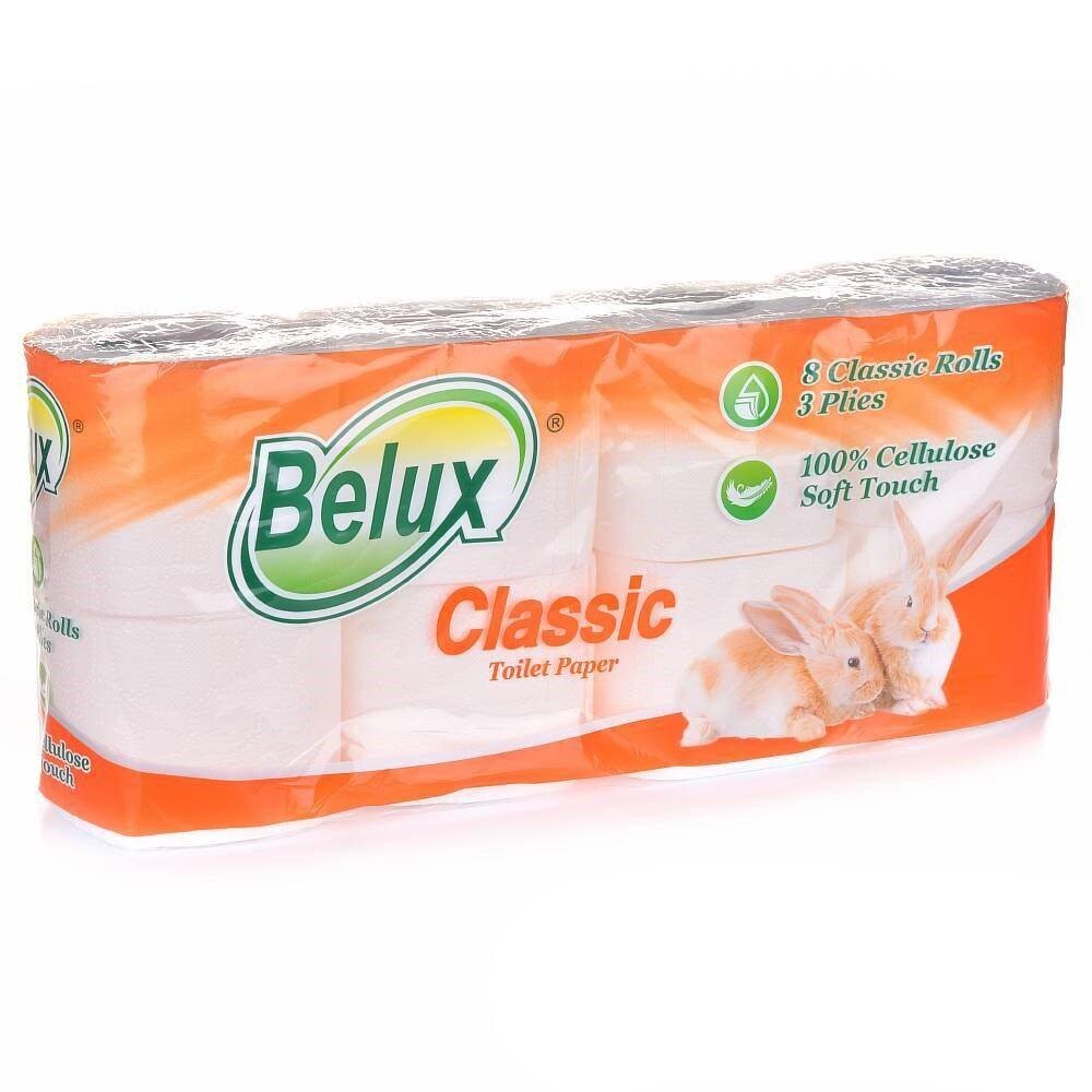 - Бумага туалетная БЕЛЮКС 8рул 3сл Классик белая 1/6