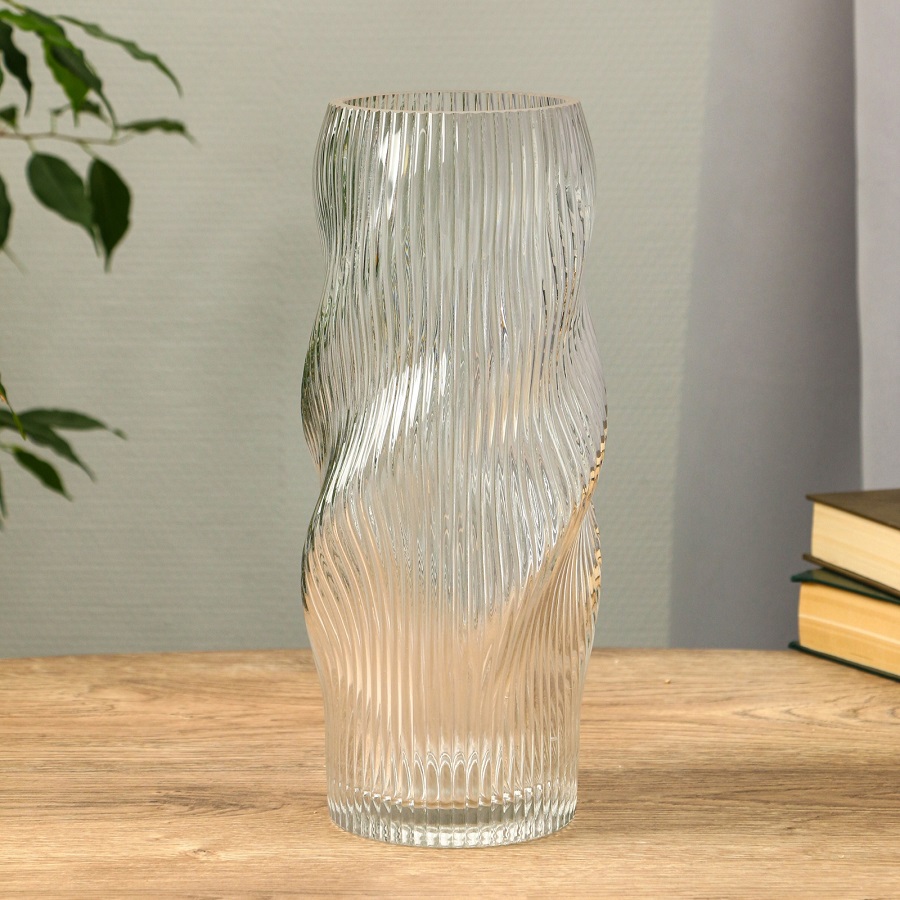 - Ваза стекло 12*10*29см РЕЛЬЕФ прозрачный Венди 10872903
